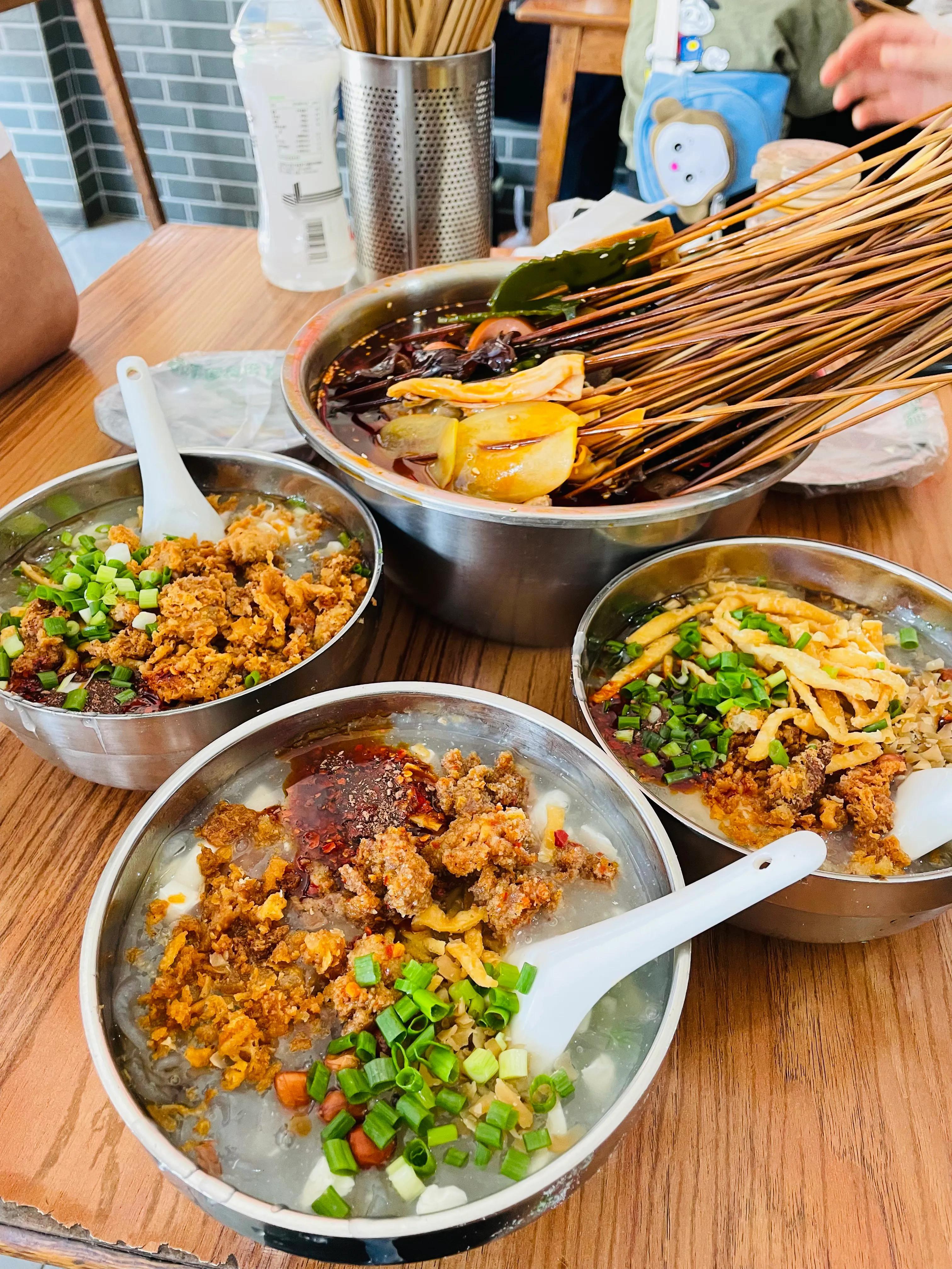除开翘脚牛肉,这个小镇最多的便是豆腐脑,钵钵鸡,红糖锅盔及米花糖,这四个中我觉得必吃的又是豆腐脑及钵钵鸡。