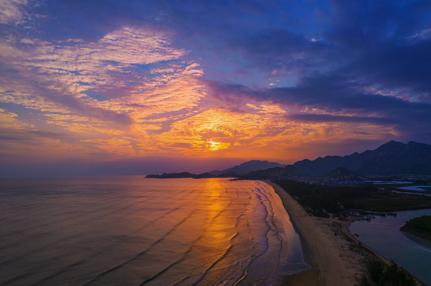 沙滩平缓,宽广舒展